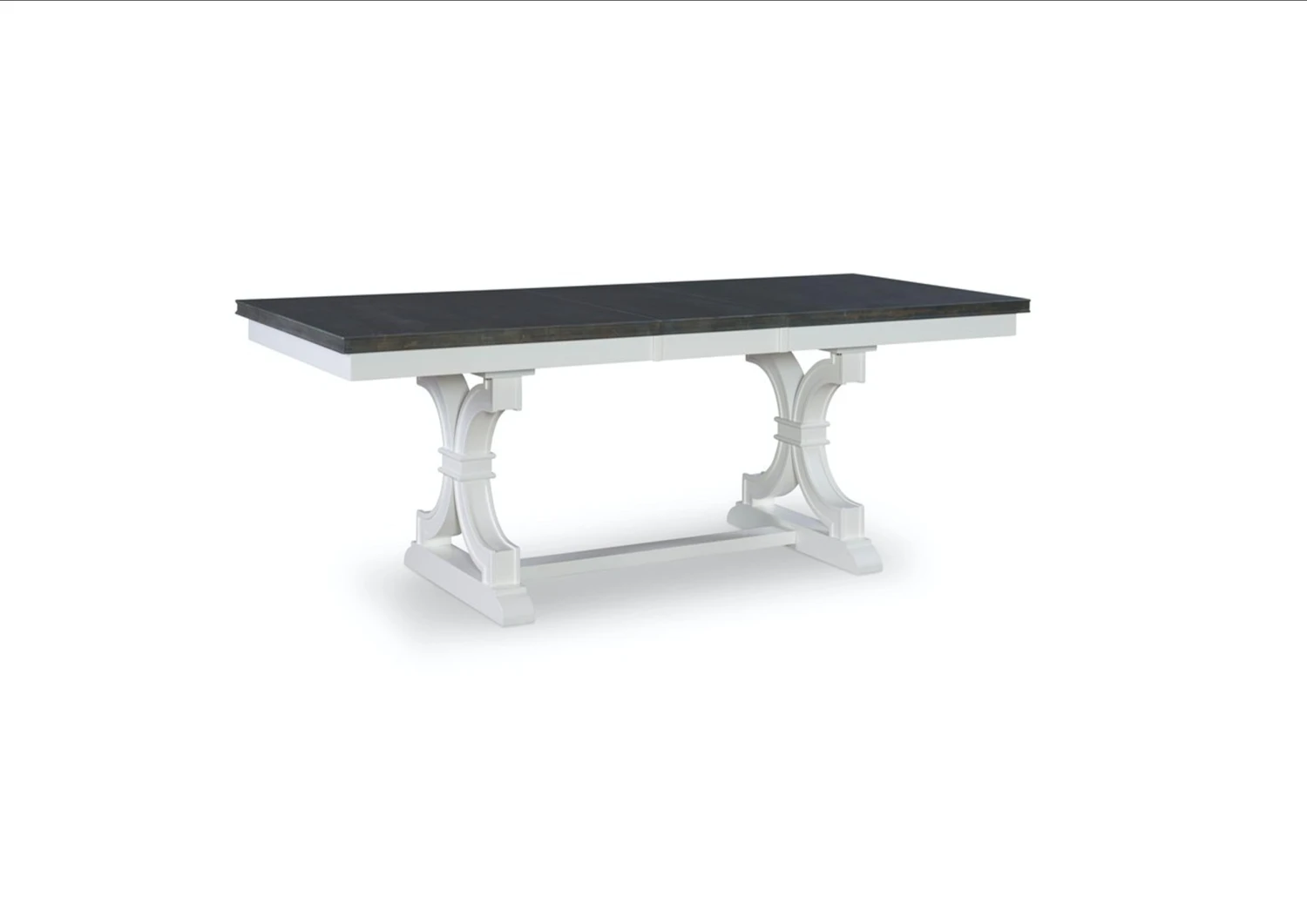 The Sonoma Table Base features an elegant, curved design with finely-crafted, decorative details. This base offers an up-scale feel that provides a stately look for your large dining area. The Sonoma Base ships unfinished or in your choice of 8 beautiful, custom finish options. The pictures of finished bases Wheat, Nickel, Chalk, Cognac, or Denim show the large, extension table top ( see CTT-4094 & CTB-73). The pictures of finished bases Taupe Gray, White, and Espresso show the Cosmopolitan Collection Extension Table (T-4078XA/B). Made from solid, eco-friendly Parawood, this table base ensures maximum strength and durability for years to come. It is designed to be used with a table top that is 96″ in length.
