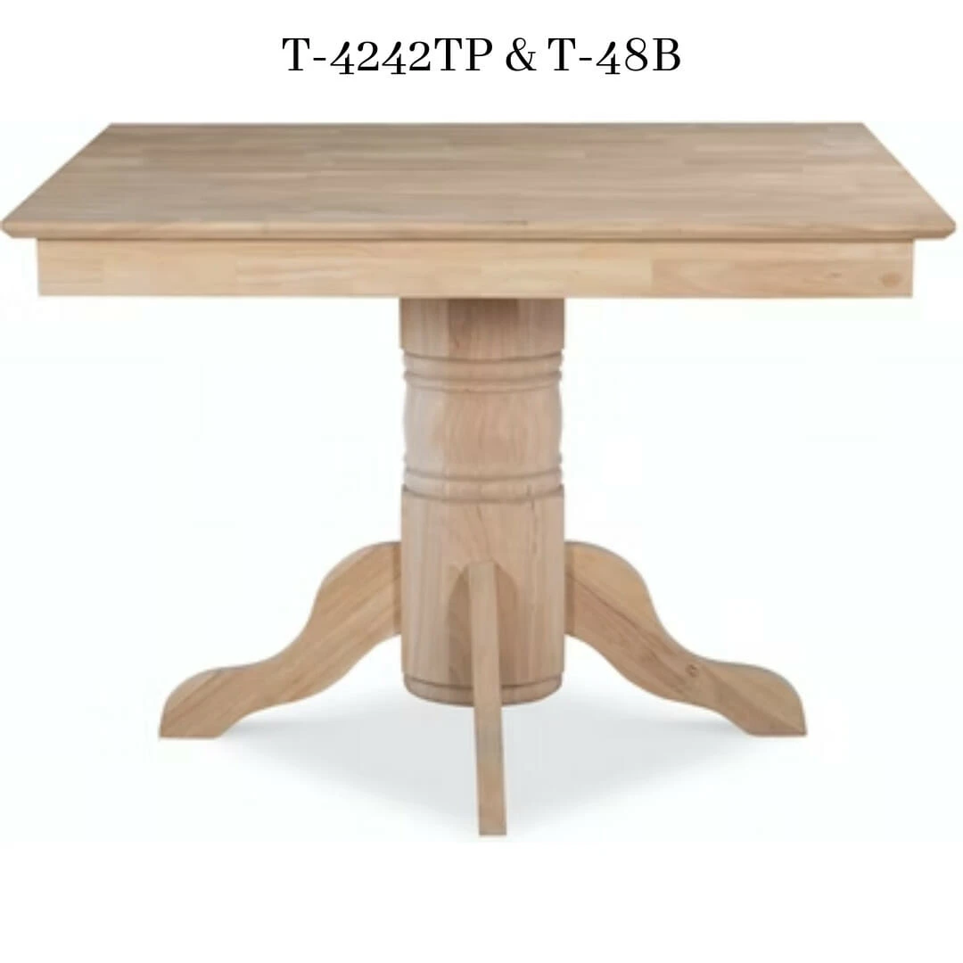 The T-4242TP 42 x 42 Square Table is part of the Create A Table program from Whitewood Industries. This unique program allows you to create your own look with a variety of solid Parawood pedestals, extensions, and tops. This square table is available unfinished. Enjoy the fine craftsmanship of John Thomas with a custom table that is beautifully made, long-lasting, and affordable.