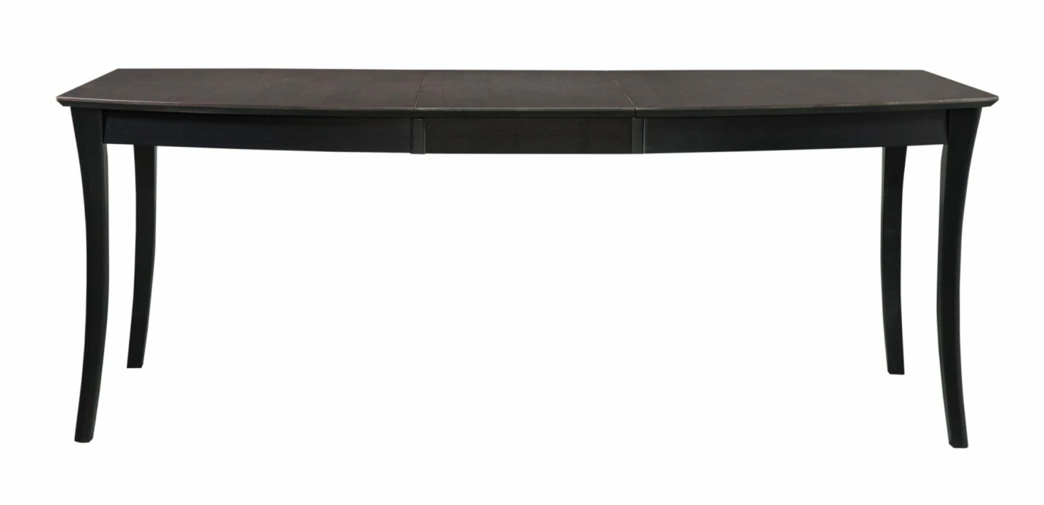The Salerno Butterfly Extension Table features a beautiful bow shape along the length, giving you ample surface area. Each leg tapers down with a subtle and sleek curve, giving it an upscale and contemporary look and feel. It includes a self-storing butterfly leaf that extends from 60″ to 78″ in length. Made from solid, eco-friendly Parawood, this table offers excellent strength and durability. It ships unfinished or in four factory finishes: Heather Gray & White, Weathered Taupe Gray, Espresso, and Coal & Black. The unfinished version also easily stains or paints to match your existing furniture. Pair this table with any of the other pieces in the Cosmopolitan Collection in order to create a cohesive look.