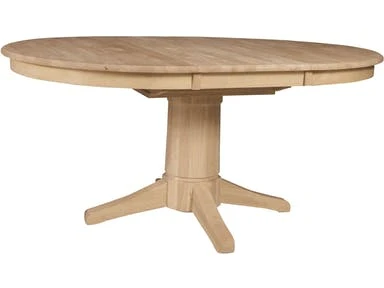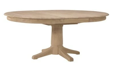 The Round Butterfly Leaf Table features a simple bevel edge which is 3/4″ thick. It pairs with your choice of bases to create your own design. Choose a standard height base to make this table 30″ tall for use with your 18 inch tall dining chairs. Choose a gathering height pedestal to make it counter height at 36″ tall to pair with your 24 inch tall counter stools. You can also purchase the top individually and pair it with your own base. Made from solid, eco-friendly Parawood, this table ships unfinished. It also easily stains or paints to match your existing furniture or to add a pop of color to your space. Pair this table with any one of our dining chairs, counter stools, or barstool in order to create your own dining set.