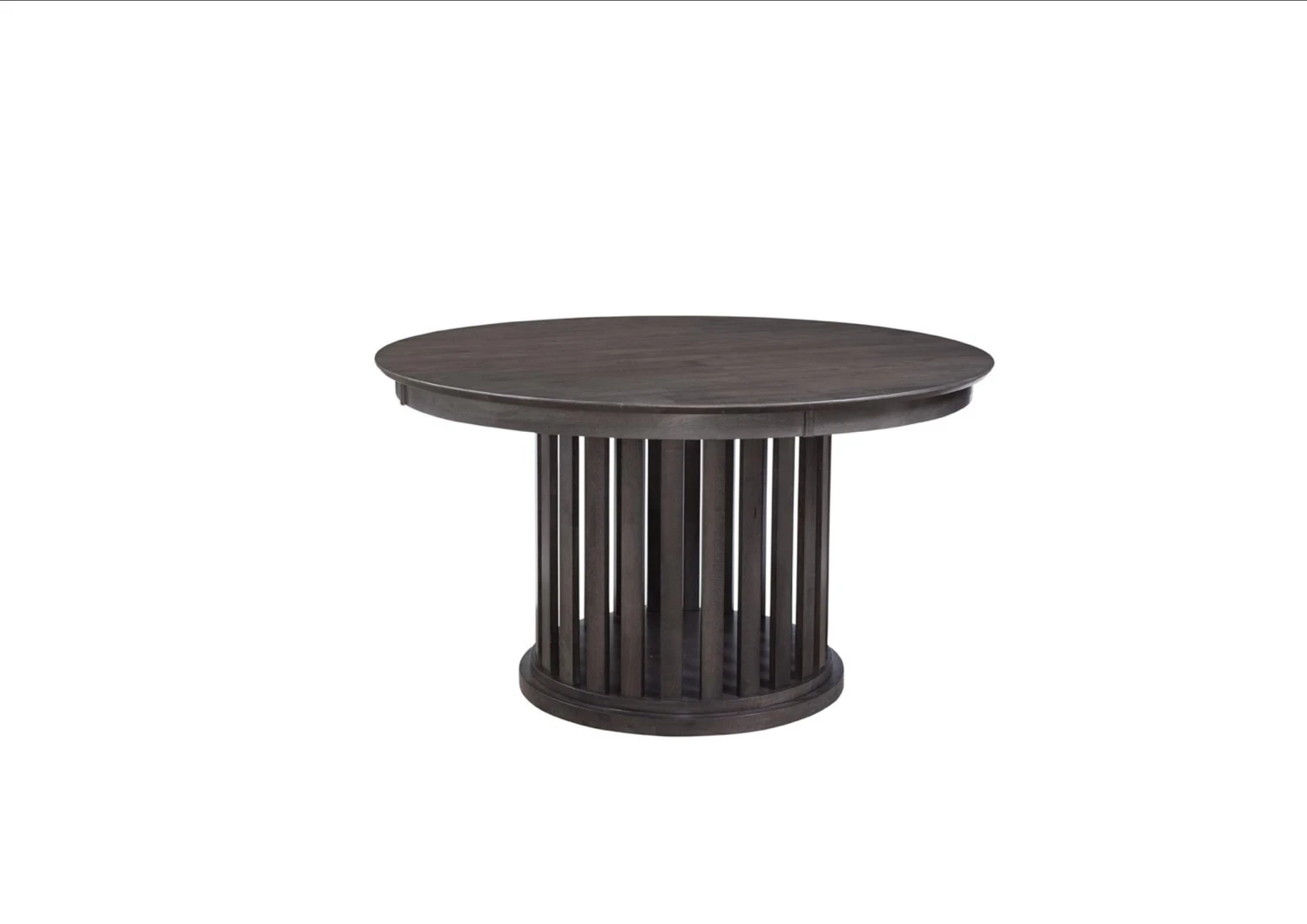 The Alta Table Top and Base features vertical slats on the base and a solid round top. The solid wood top offers ample space for dining, entertaining, or playing games. In addition, the clean lines allow excellent versatility allowing you to use it in any room in your home. Made from solid, eco-friendly Parawood for strength and durability, this table ships factory finished in your choice of either Coal or Flax. The Alta Table Top and Base pairs well with any of our traditional mission furniture. It also pairs well with other pieces in the SoMa Collection in order to create a cohesive look.