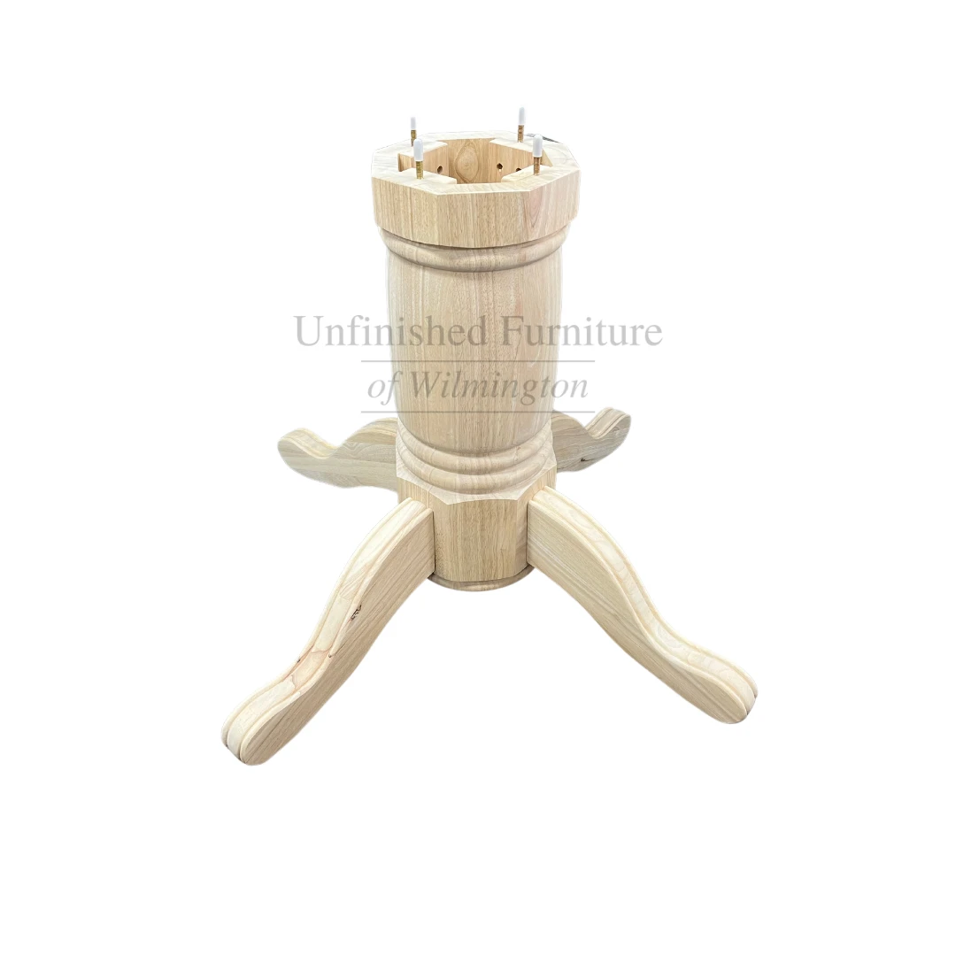 The Round Empire Foot Table Base features a large round pedestal with gently curved feet. It combines perfectly with our 48″ Round Table, 52″ Round Table, and 60″ round table. In addition, you can pair this base with any 18-inch chair to create a beautiful dining set. This 10″ pedestal base features four studs on the top. Made from solid, eco-friendly Parawood in order to ensure maximum strength and durability. The kit includes the center column and the four feet. A wood plate and uprights will also need to be fabricated to attach our pedestal to your existing table top.