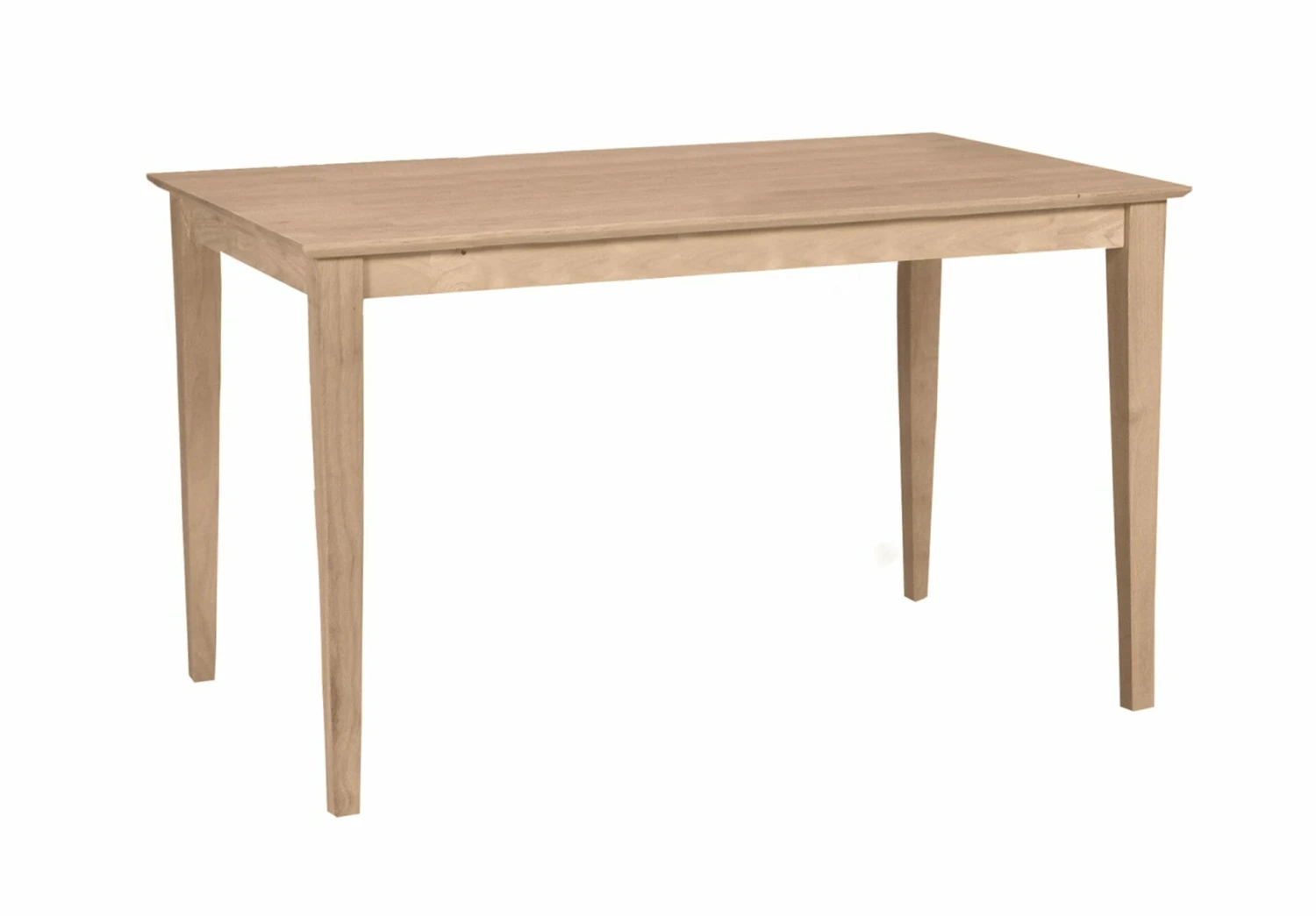 The T-6036 Solid Top Shaker Table offers ample space for entertaining your friends and family. This table works well in a smaller kitchen or dining space. This table ships unfinished, but easily stains or paints to match your existing furniture. Enjoy the fine craftsmanship of John Thomas with a table that is beautifully made, long-lasting, and affordable.