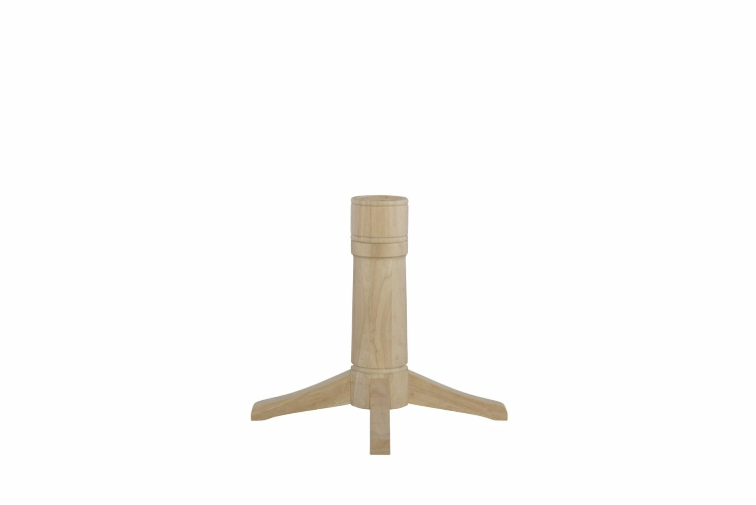 The Transitional Table Base with Extension features a round pedestal and angular feet. This solid wood table base and extension are designed for use with our 42 inch, 48 inch, or 52 inch table tops. This DIY table base works well for those that wish to make their table top a 36 inch tall pub height. This 8″ diameter table base features four threaded inserts on top. Made from solid, eco-friendly Parawood in order to ensure maximum strength and durability. In addition, this base ships unfinished, but easily stains or paints to match your existing furniture.