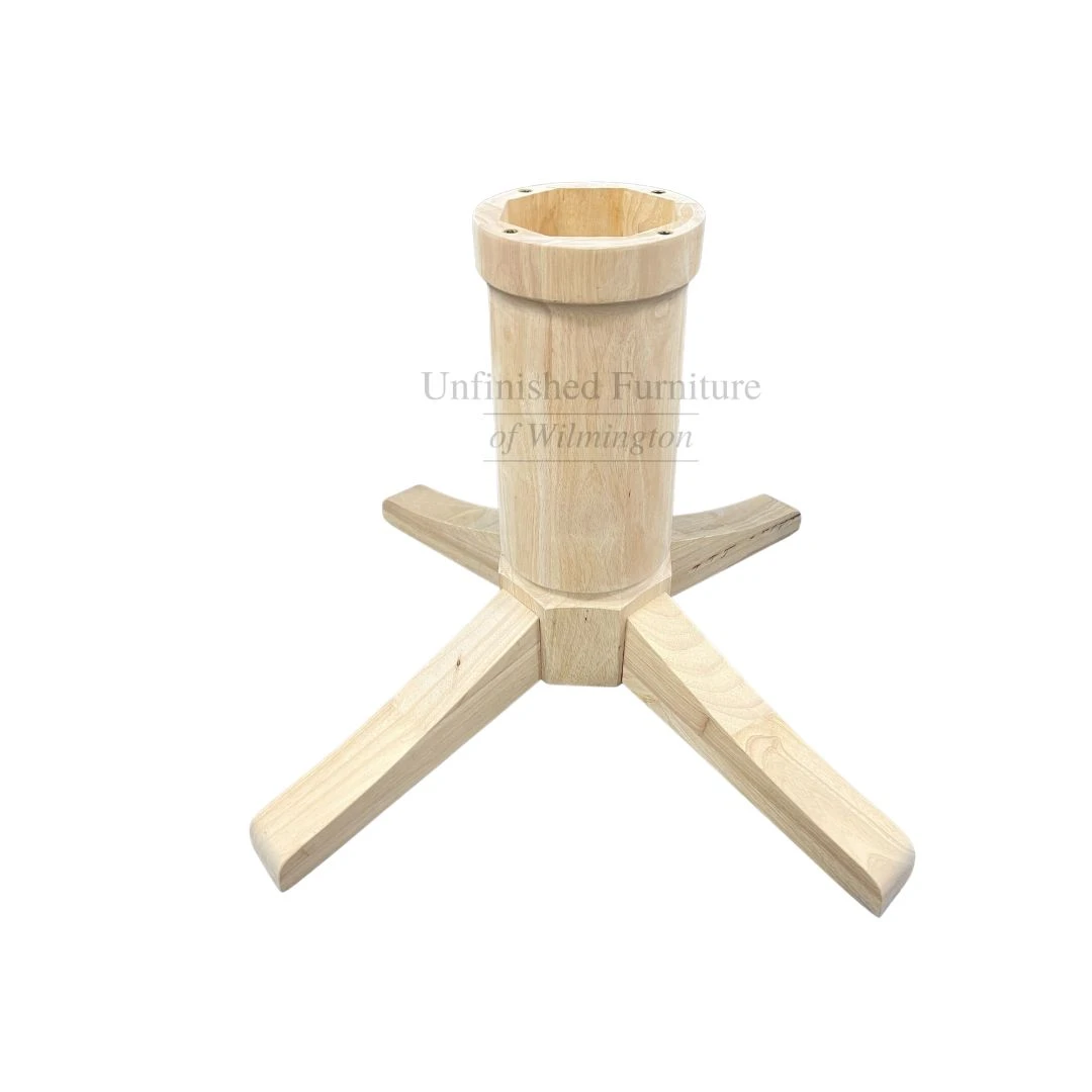 The 8″ Pedestal Base offers a round base with straight legs. It combines well with our 42″-48″ round extension tables or pairs with your existing top for a custom creation. The reduced height of this base allows for use with tables with a self storing leaf. Made from solid, eco-friendly Parawood in order to ensure maximum strength and durability. It ships unfinished, but can be easily stained or painted to match any of your existing furniture. A table mounting plate will need to be fabricated in order to use this base with your existing table. In addition, the bolts for the mounting plate will need to be purchased separately. Click HERE for example of hardware needed.