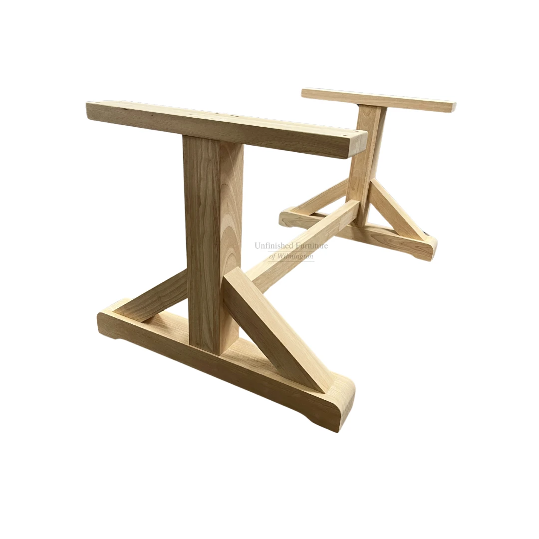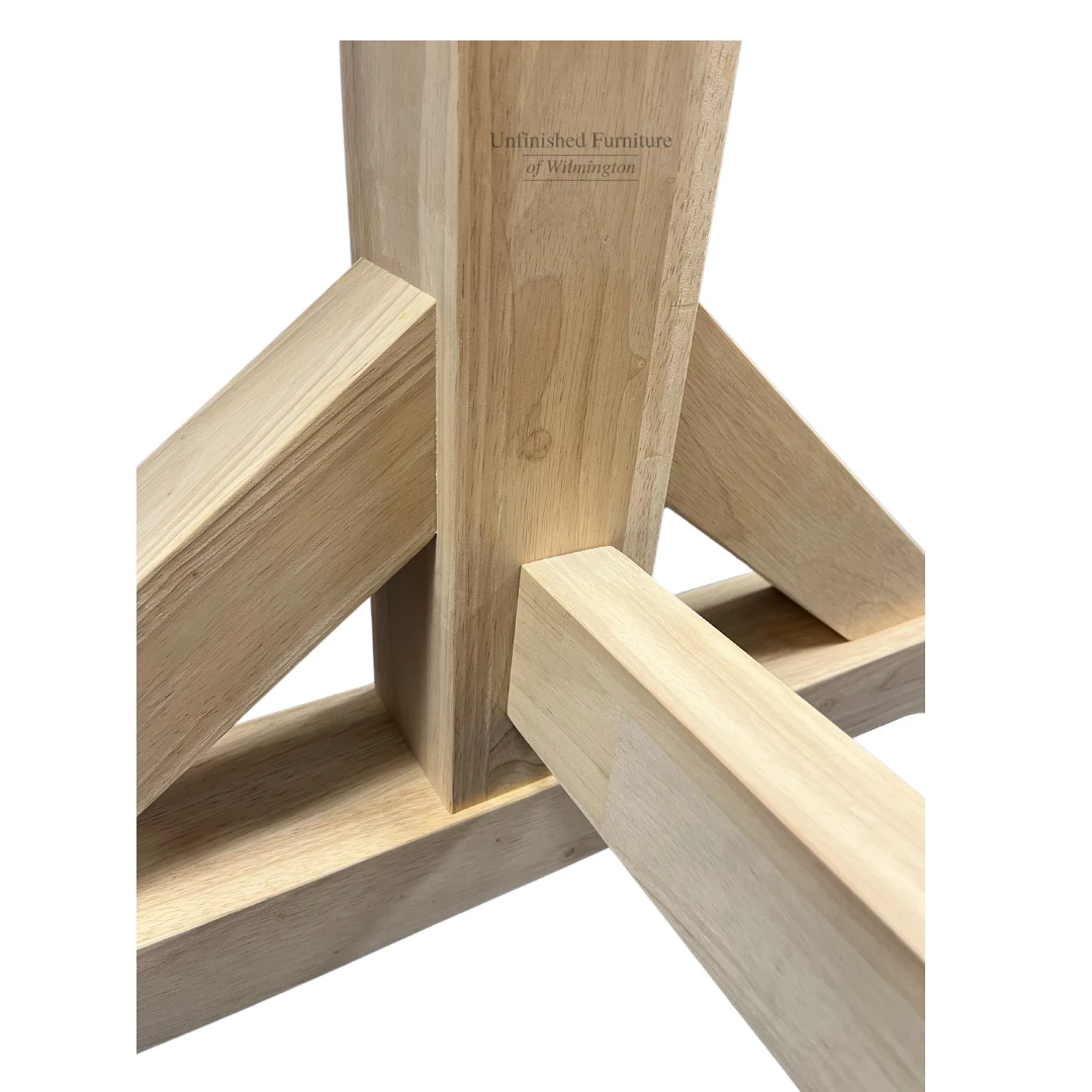 The Canyon Trestle Base compliments a Farmhouse style. This base is included with the T-4084XT and T-8440XBT tables, which are both part of the Farmhouse Chic collection (sold separately). In addition, this base modifies easily for use with your own table top. Made from solid, eco-friendly Parawood in order to ensure maximum strength and durability. It ships unfinished, but can be easily stained or painted to match any of your existing furniture. This base includes two pedestals, one stretcher, and the associated hardware. Pair the Canyon Trestle base with any of the pieces in the Canyon Collection for a cohesive look.