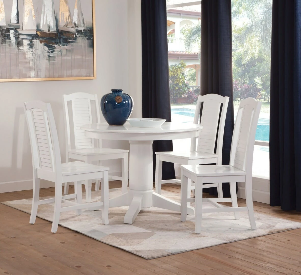 Model number T08-142 Hampton 42″ Round Table in White by Whitewood Industries.
